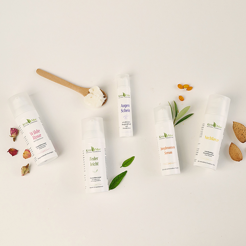 - Wildrosenöl: verwöhnt die zarte Haut, regeneriert und hinterlässt ein wunderbar geschmeidiges Gefühl