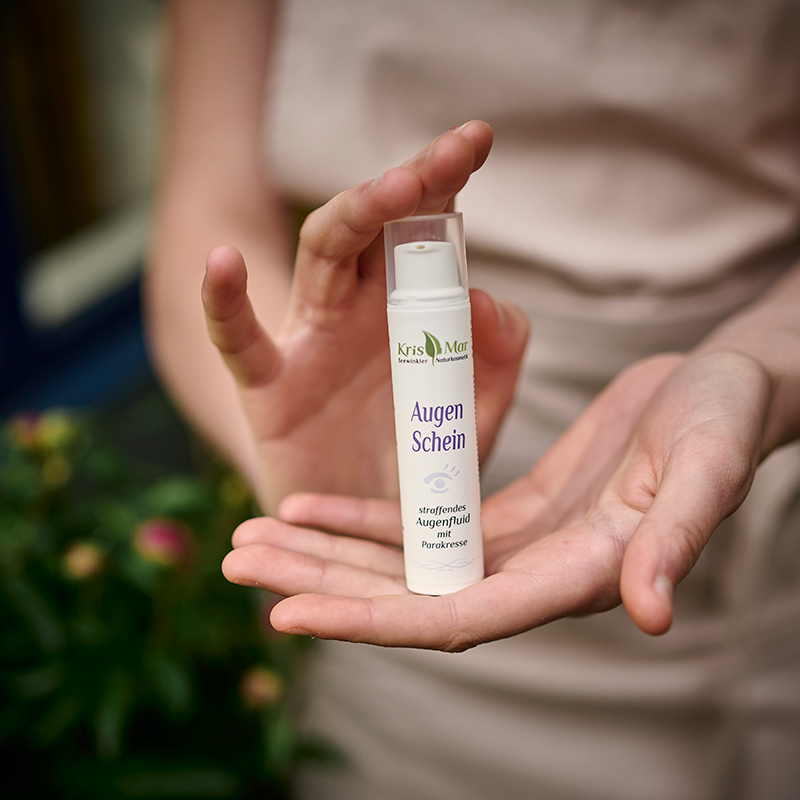 Morgens und abends sanft auf die gereinigte Augenpartie auftragen und mit den Fingerspitzen einklopfen – ein kleines Ritual mit großer Wirkung.