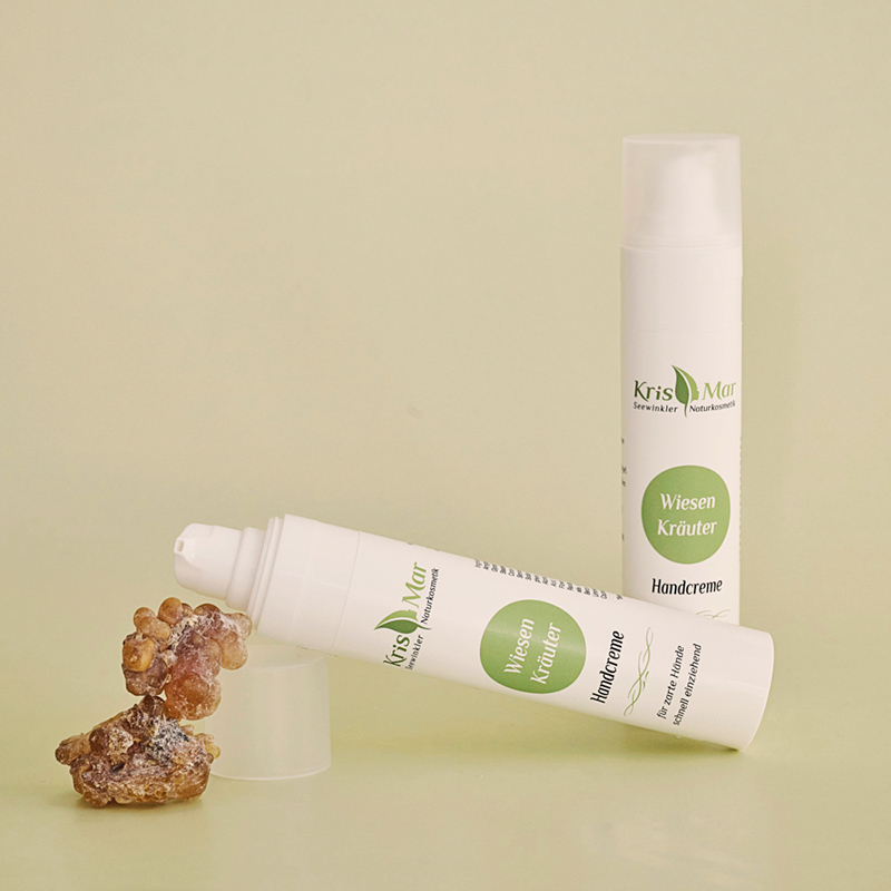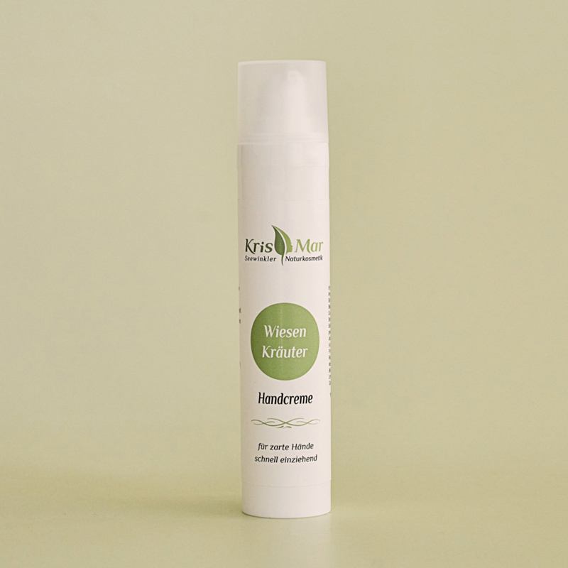 Unsere Handcreme Wiesenkräuter verwöhnt deine Haut mit einer reichhaltigen Pflegeformel aus hochwertigen, natürlichen Ölen wie kaltgepresstem Kokosöl, Kamillenöl, Ringelblumenöl, Jojoba- und Mandelöl. Sie zieht schnell ein und hinterlässt einen erdenden Duft nach Wiesenkräutern und beruhigendem Weihrauch.