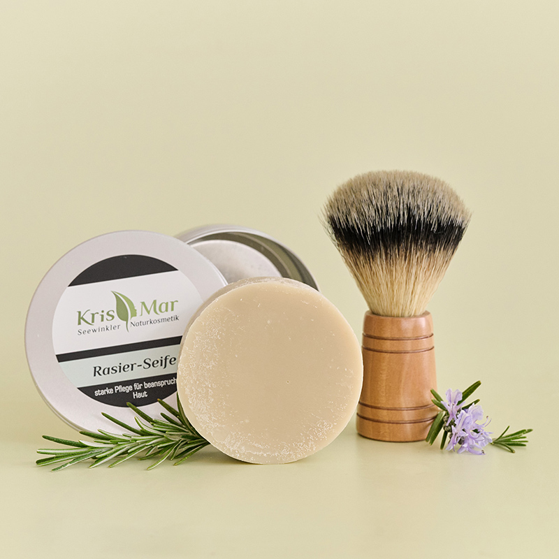 Unsere handgemachte Rasierseife schützt die Männerhaut sanft vor Reizungen und Trockenheit, ganz ohne schädliche chemische Zusätze, Stabilisatoren oder Schaumbildner.